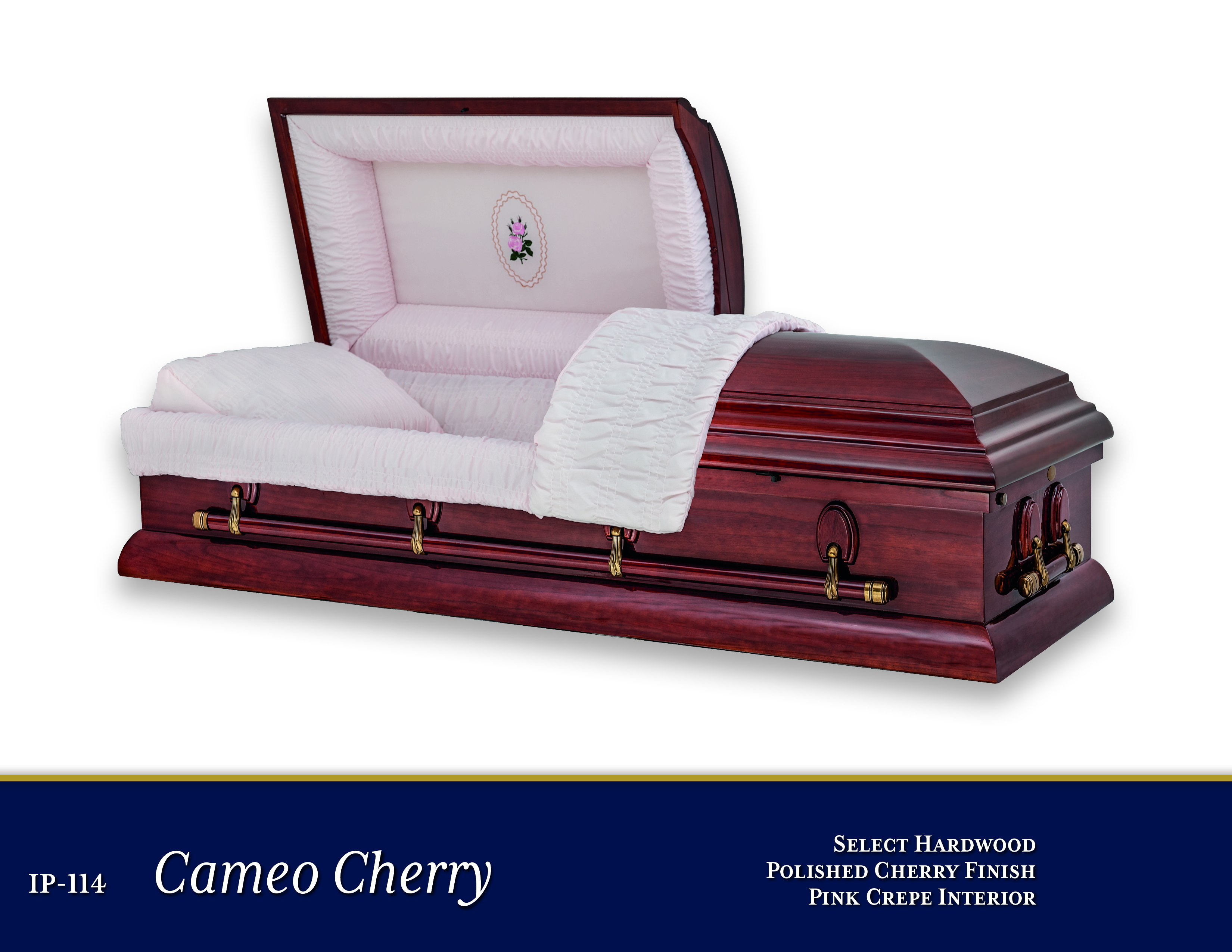 IP-114 Cameo Cherry$3,495.00PriceSelect HardwoodPolished Cherry FinishPink Crepe InteriorOpen Shareable Image